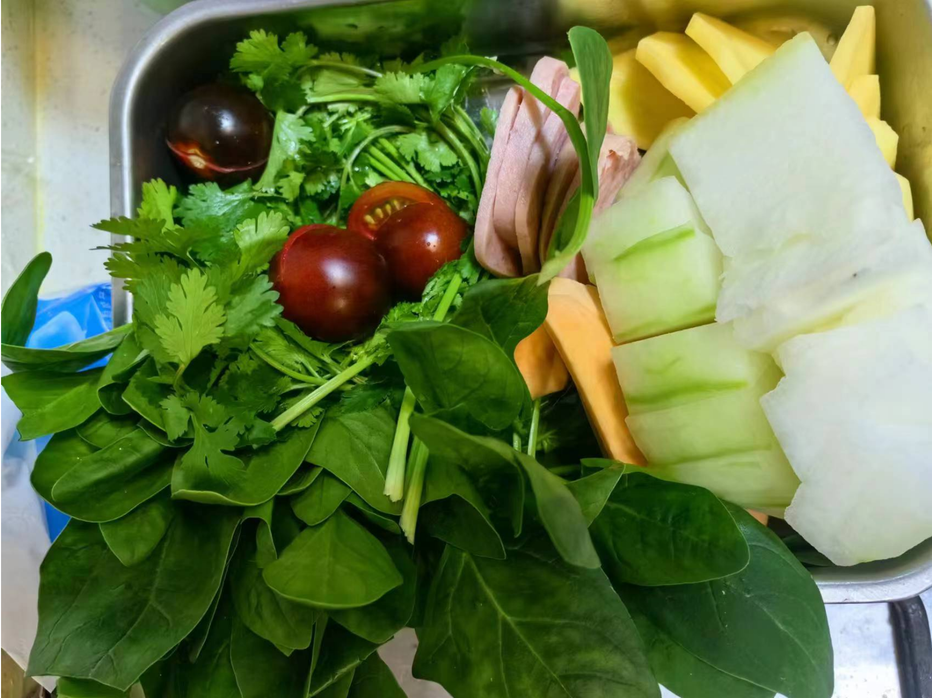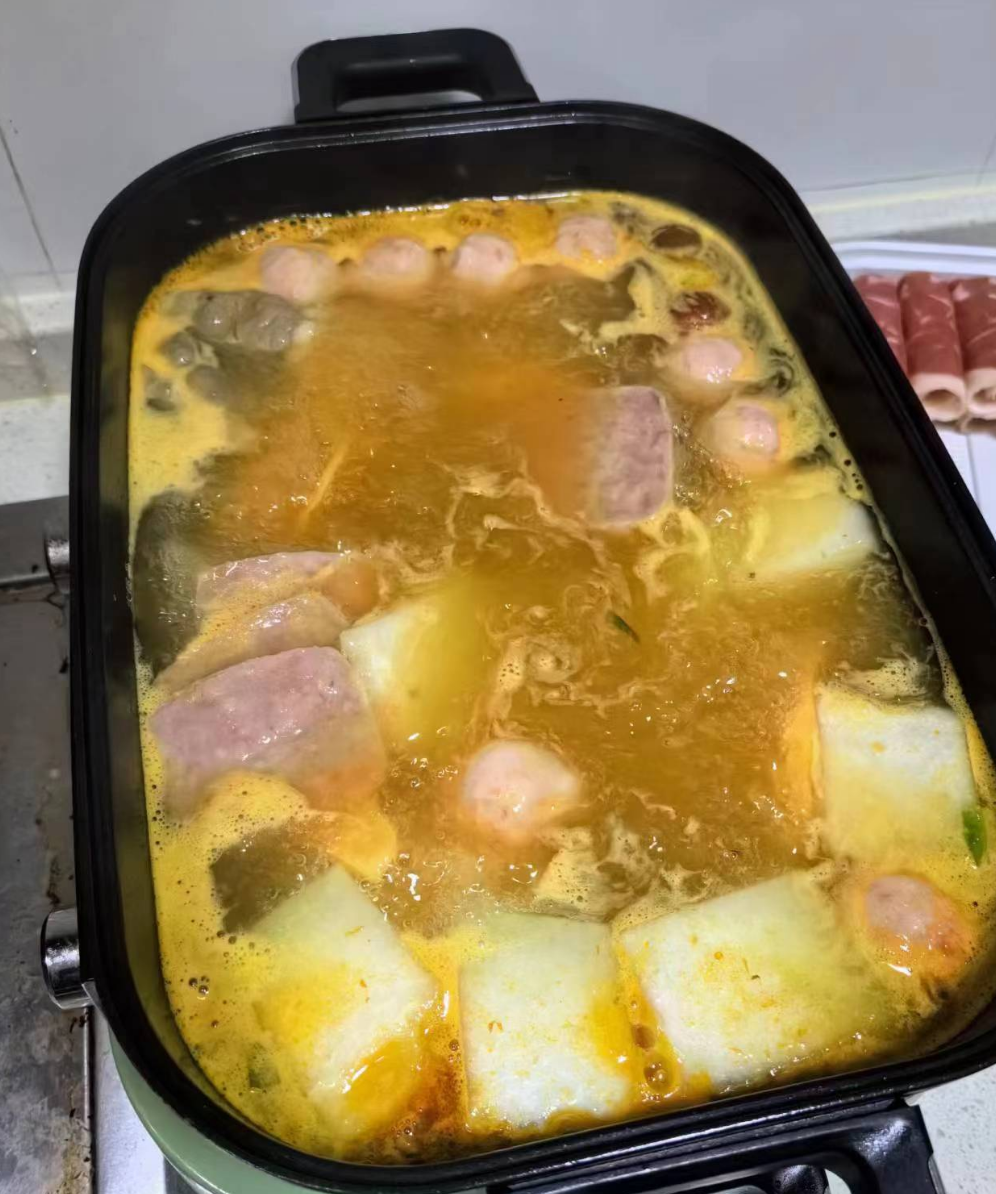 还有羊腿肉、小菠菜、冬瓜、午餐肉、鸭蛋黄鱼丸、香菜